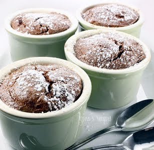 Wipe the top 1/4 inch “collar” of the ramekin to remove any excess batter so that the souffle will rise straight and place ramekins on a baking sheet. Bake at 400°F for 15 minutes. Serve immediately.