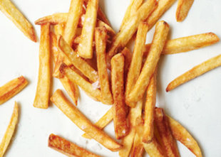 Using a slotted spoon, transfer fries to paper towels to drain. Season with coarse sea salt.