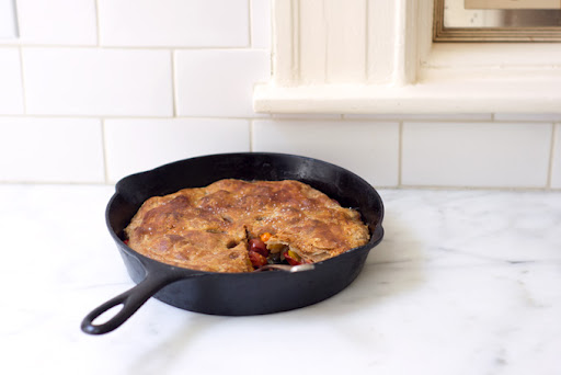 - Instead of topping with a pie crust, top with biscuit dough instead of pie crust