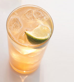 Combine sugar, red pepper flakes, salt, ginger, and 2 cups water in a small saucepan. Bring to a boil, reduce heat to low, and simmer for 15 minutes. Remove pan from heat, cover, and steep for 30 minutes. Strain ginger syrup into a jar and chill. Fill a 12-oz. glass with ice cubes. Add 2 Tbsp. ginger syrup, squeeze a lime wedge into glass, and top with soda water. Stir to combine.