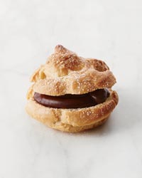 In a bowl, whisk the egg yolks, sugar, flour and cornstarch. In a saucepan, bring the milk and cream to a simmer; whisk 1/2 cup of the mixture into the eggs, then whisk the egg-milk mixture into the saucepan. Cook the pastry cream over low heat, whisking constantly, until thick, 2 minutes. Off the heat, whisk in the dark chocolate until melted. Transfer to a bowl, cover with plastic wrap and refrigerate until cool, about 2 hours.