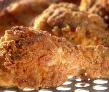 My husband has been begging me to fix him fried chicken since we got married almost 4 years ago and I finally gave it a try after watching this episode. It was so easy and delicious. The hot pepper sauce adds the perfect amount of heat and the bredding was crunchy and had wonderful flavor. Tbe breast pieces that came in my package of chicken were much larger than the legs and thighs and took almost 30min to cook, but the dark meat was perfectly done in 15min. My husband is thrilled that we can now add fried chicken to our weeknight meal options.