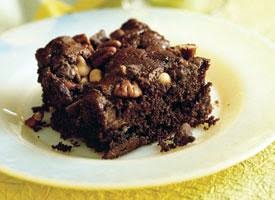 4. Drop melted chocolate mixture by teaspoonfuls over batter, dropping more around edge than in center. Stir remaining 1/2 cup chocolate chips and the pecans into reserved cake mixture; sprinkle over batter.