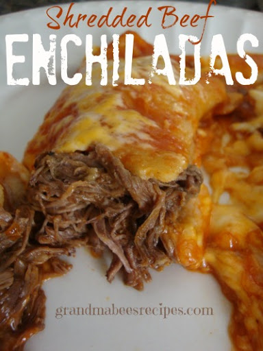 Roll up 2 – 3 tablespoons of the shredded beef in each tortilla. Place the enchiladas close together into the sauce in your baking dish.