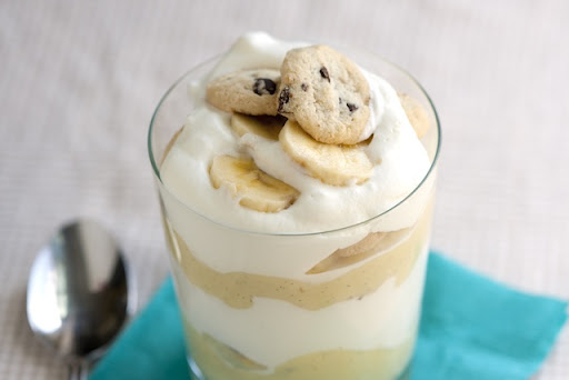6.To assemble dessert, alternate pudding, sliced bananas, cookies and whipped cream in a bowl or glass then enjoy immediately or cover with plastic wrap and leave in refrigerator up to a day so the cookies soften.