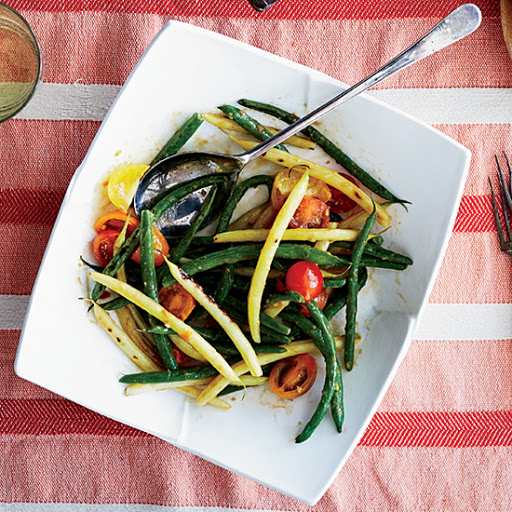 In a saucepan of salted boiling water, cook the beans until crisp-tender, 2 minutes. Drain and cool under running water. Drain again and pat dry, then transfer to a large bowl.