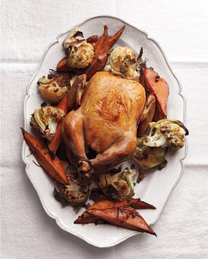 Roast Chicken with Cauliflower and Sweet Potatoes