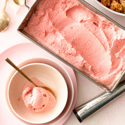 2. Freeze in an ice cream maker according to instructions and transfer to a container with a lid. Freeze until firm, about 4 hours. Let soften for about 15 to 20 minutes at room temperature before scooping.