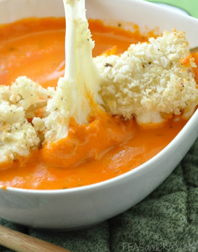 Serve atop the bowl of tomato soup and enjoy.
