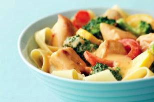 MICROWAVE VELVEETA and milk in small microwaveable bowl on HIGH 2 to 3 min. or until VELVEETA is melted and mixture is well blended, stirring after 1-1/2 min. Add to chicken mixture; mix lightly. Serve over pasta.