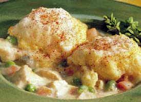 2. Stir Bisquick mix and 1/3 cup milk until soft dough forms. Drop dough by 8 spoonfuls onto chicken mixture (do not drop directly into liquid). Sprinkle with paprika.