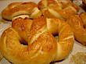 6. Roll each piece of dough into a snake about 2 feet long. Twist each piece into a pretzel shape. Place 3 or 4 at a time into the water. Leave them there for 1 minute, then take them out and drain them on towels.
