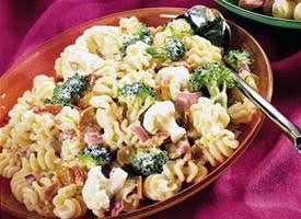 4. In large bowl, combine cooked pasta, bacon and all remaining salad ingredients. Pour dressing over salad; toss gently to coat. Cover; refrigerate at least 30 minutes to blend flavors.