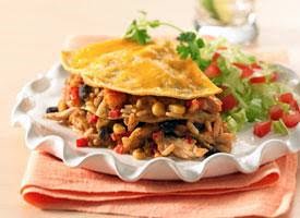 1 Serving: Calories 250 (Calories from Fat 35); Total Fat 3 1/2g (Saturated Fat 1g, Trans Fat 0g); Cholesterol 30mg; Sodium 880mg; Total Carbohydrate 35g (Dietary Fiber 6g, Sugars 4g); Protein 19g Percent Daily Value*: Vitamin A 35%; Vitamin C 30%; Calcium 15%; Iron 10% Exchanges: 2 Starch; 1/2 Other Carbohydrate; 0 Vegetable; 2 Very Lean Meat Carbohydrate Choices: 2