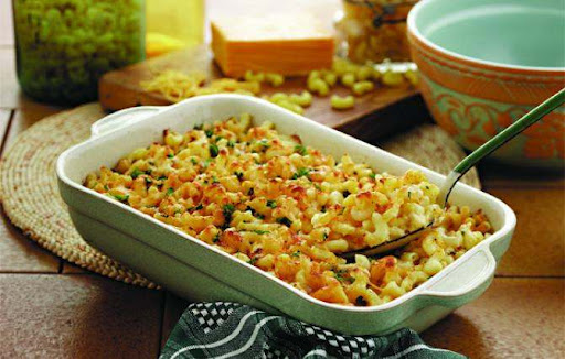 .4Fold macaroni into cheese mixture gently; mix well. Spoon macaroni mixture into prepared baking dish.