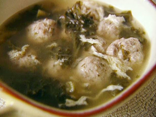 To make the soup: Bring the broth to a boil in a large pot over medium-high heat. Add the meatballs and curly endive and simmer until the meatballs are cooked through and the curly endive is tender, about 8 minutes. Whisk the eggs and cheese in a medium bowl to blend. Stir the soup in a circular motion. Gradually drizzle the egg mixture into the moving broth, stirring gently with a fork to form thin stands of egg, about 1 minute. Season the soup to taste with salt and pepper.