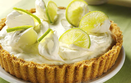 Meanwhile, place the remaining heavy cream in a medium bowl. Beat with an electric mixer set on medium speed until soft peaks form. Spoon large dollops around the edge of the filling. Cut the reserved lime slices in half and garnish the top of the pie. Serve immediately.