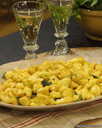 5.While the gnocchi are cooking, make the sauce: Melt butter in a large skillet over medium heat. When it begins to foam, add sage, and stir a few times.
