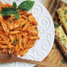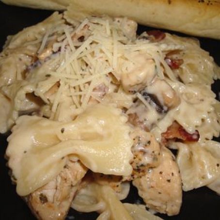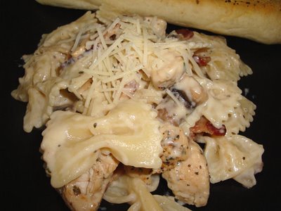 Pour chicken and sauce onto cooked pasta and mix well. Garnish with additional parmesan cheese if desired. Serve and enjoy.