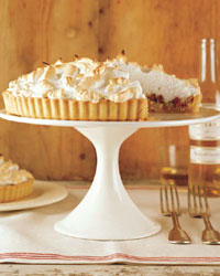 Jean-Georges Vongerichten bakes the raw rhubarb in the raw pastry shell, rather than blind-baking (precooking) the crust. But the cooks in the F&W Test Kitchen discovered you can use Vongerichten's method only in a convection oven; in a conventional oven, the shell didn't bake through. That's why the recipe here calls for cooking the tart shell completely before adding the rhubarb. However you make this dessert, it's irresistibly tangy, creamy and frothy.