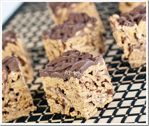 When completely cooled, melt the rest of the chocolate chips in the microwave. Drizzle the melted chocolate over the top of the bars and let set until hardened.