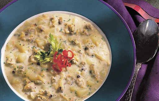 5.Cook until chowder thickens, about 5 minutes, stirring occasionally. Stir in the clams. Cook until clams are firm, about 5 minutes, stirring chowder occasionally.