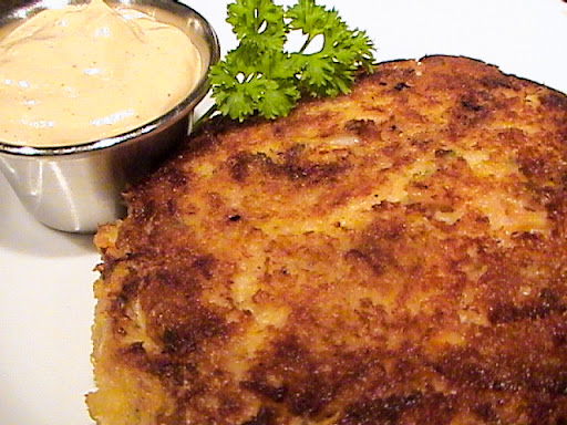 5. When oil is hot, saute the crab cakes for 2 to 3 minutes perside or until golden brown. Slid crab cakes onto a baking sheet and bake for 8 to 10 minutes in the oven. Serve with mustard dipping sauce on the side.