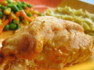 Do not bake. Follow directions up to baking, seal and place in freezer. To serve: Thaw. Place chicken breasts in an 8×8 baking dish. In a small pan combine the butter, vinegar, and hot sauce. Cook over medium heat until bubbling. Pour the sauce over the chicken. Bake for 1 hour, or until chicken reaches at least 165 degrees, at 350 degrees. Melt additional bleu cheese over the top if desired and serve with celery.