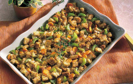 .6Variation: For a lower-fat version of this stuffing, substitute margarine for the butter and use reduced-sodium fat-free chicken broth.