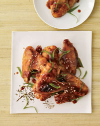 Nick Podesta and Jason Freiman put an Asian spin on chicken wings, the all-American bar snack, by coating them in a sweet-spicy-sticky glaze made with brown sugar, soy and chile sauces, chopped ginger and scallions.
