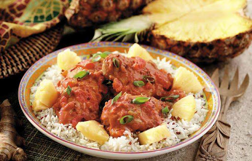 .6Cook, covered, until an instant-read thermometer inserted in center of meat registers 180ºF, about 17 minutes. Garnish with sliced green onions and pineapple chunks, if desired. Serve with rice.