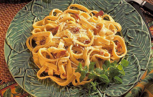 .5Pour pancetta mixture over pasta; toss to coat. Heat over medium-low heat until hot. Stir in egg the mixture. Toss to coat. Serve with remaining 1/3 cup Parmesan.