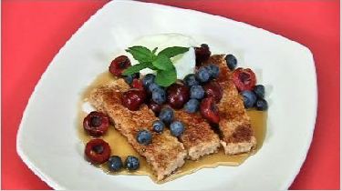 Sprinkle a little ground cinnamon over one wide flat side of each slice and saute them in batches in a large nonstick pan in a little melted butter. Stay with them and carefully flip them over to brown both sides.