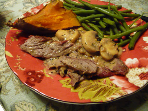 Spoon sauce over meat and serve.