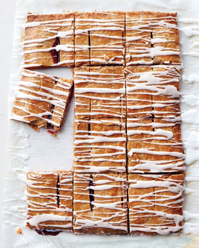 Bake until golden and jam is bubbling up through vents, about 35 minutes. Let cool completely on baking sheet on a wire rack. Pastry can be stored, covered in plastic, up to 1 day before glazing and cutting.