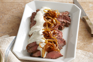 Cook steak in same skillet 3 to 4 min. on each side or until medium doneness (160ºF).