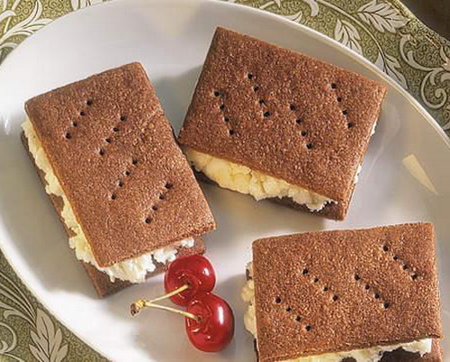 Gram always made the tastiest ice-cream sandwiches with these flat chocolate cookies. To prevent the cookies from puffing up too much, she added only a smidgen of baking soda. If Grandma needed to soften a quart of ice cream in a hurry, her trick was to microwave it on HIGH for about 20 seconds.
