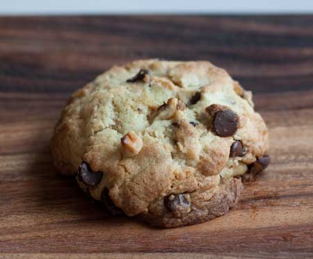 My copycat version is a spin-off of Lisa’s original version from Art Culinaire, but I’ve made a few modifications to get the thick, brown, scraggly appearance of the original. I use cold bread flour, very cold European style butter, plus I bake the cookies in a convection oven. You can make the cookies with all-purpose flour and regular (American style) butter as well, and you can also use a regular oven as opposed to convection. In my personal experience comparing the two cookies side by side, using the bread flour, European butter and convection oven helped make the cookies more like their namesake, but those three things aren’t critical.