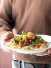3. To serve, place noodles on serving plates. Spoon the shrimp mixture over noodles and sprinkle with toasted sesame seeds.