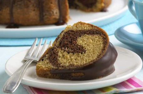 Spoon one-half of the remaining yellow batter into the prepared pan. Spoon the chocolate batter on top. Top with the remaining yellow batter. Bake until a toothpick inserted in the center comes out clean, 40–45 minutes. Cool in the pan for 10 minutes. Invert on a wire rack and cool completely.