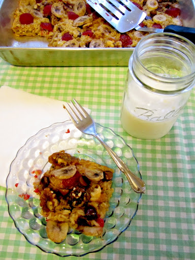Bake 35 to 40 minutes or until the top is nicely golden brown and the milk mixture has set. For an extra tasty top, sprinkle a tablespoon or so of extra brown sugar.