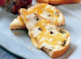 2. Place bread on grill over medium heat. Cover grill; cook 2 to 3 minutes or until bread is toasted and cheese is melted.