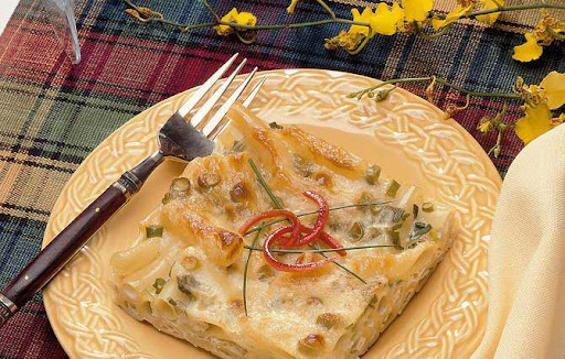 .2Cook pasta according to package directions, omitting salt; drain. Place in bottom of prepared baking pan.