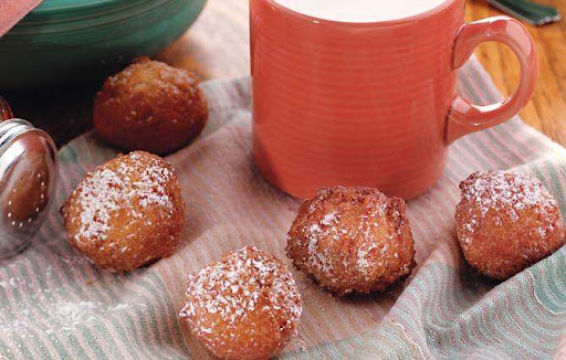 .4Drop the batter by rounded teaspoonfuls into the hot oil; do not crowd the doughnuts. Cook until golden on all sides, about 2 minutes per doughnut. Drain on paper towels. Sprinkle doughnuts with the confectioners’ sugar.