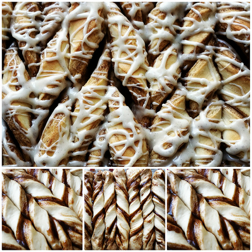Begin by preparing the dough. In a large mixing bowl, stir yeast and brown sugar, then pour warm water on top and allow to sit for about five minutes until foamy on top. With a dough hook, mix in salt, oil, and flour and knead until dough is smooth and elastic, about 3 minutes. On a floured surface, roll dough out into a large rectangle, about 10 x 15 inches. Next, prepare the filling by melting the butter in a microwave-safe bowl. Stir in brown sugar, cinnamon, and cardamom to form a grainy paste. Spread the filling evenly over the rectangle of dough. Using a pizza cutter, cut 12 even strips into the dough. Prepare a 9×13 baking dish with non-stick spray or butter. Remove each strip one by one, folding it in half lengthwise and giving it a gentle stretch. Holding onto each end, twist it a few times and place it in the baking dish. Repeat with remaining strips, then cover dish with plastic wrap and allow to rise for 20 minutes. Preheat oven to 375 degrees, then bake for 10-15, or until golden brown on top. When cinnamon twists are removed from the oven, begin making the icing by stirring together powdered sugar, vanilla, and milk. Drizzle over warm cinnamon twists and serve warm.
