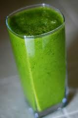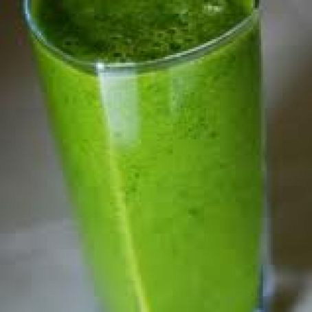 Pack kale down into a blender. Add 1/2 c. water and pulse to chop finely. Stir and pulse until finely chopped. Add parsley, apple, ginger and honey. Blend, stopping and stirring often, until smooth. Add ice nad blend until smooth.