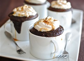 2. Pour batter evenly into 8 coffee mugs, about 2/3rds high in each one. Bake according to box directions, or until done, about 25 minutes. Use a toothpick to check doneness. It should be clean.