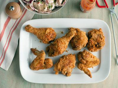 Drain chicken on a rack over a sheet pan. Don't drain by setting chicken directly on paper towels or brown paper bags. If you need to hold the chicken before serving, cover loosely with foil but avoid holding in a warm oven, especially if it's a gas oven.