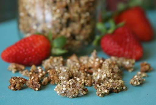 Packed with protein, fiber, and healthy fat, a handful of this crunch sticks with me and tides me over until my next meal. Enjoy this healthy snack by the handful or sprinkled over fresh fruit, applesauce, or smoothies for some added crunch. For extra sweetness, stir 1/2 cup raisins or other dried fruit into the mixture upon removing it from the oven.