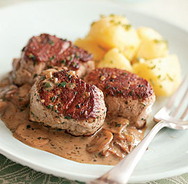 1. Trim the tenderloins of silverskin and any excess fat. Cut the tenderloins into 2-inch-thick medallions. Flip each medallion onto a cut side and press down with the palm of your hand to flatten slightly. Season the meat with 3/4 teaspoon salt and 1/4 teaspoon black pepper.